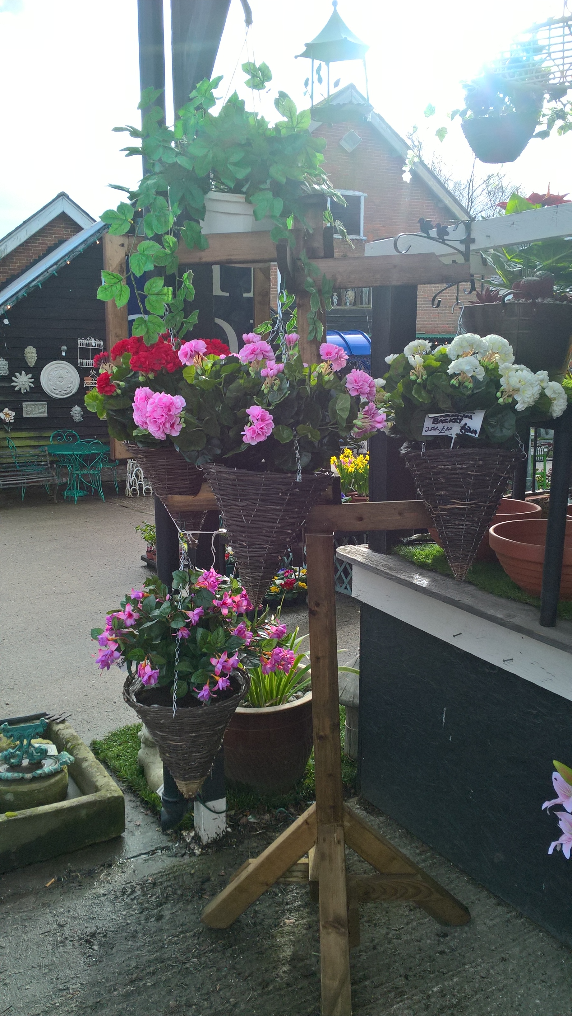 Huge selection of plants and flowers, all at a fraction of garden centre prices. Situated by the Sales Office in the centre of Muggeridge Farm. New range of stunning artificial flowers in pots as well as hanging baskets to choose from (please see last 5 pictures for just how realistic they are - you can't kill them and they are really good prices!).