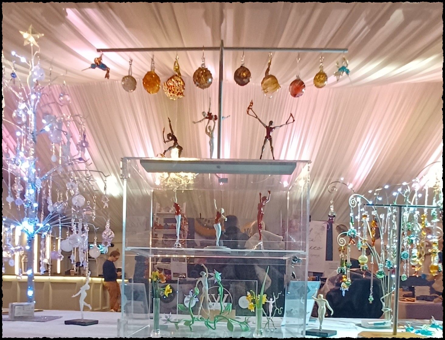 Regular demonstrations of sculptural flameworking and glass beadmaking can be viewed from the area in front of the main cabin windows. Courses and workshops in various aspects of glass making alongside regular classes are available. Please call in to find out more.